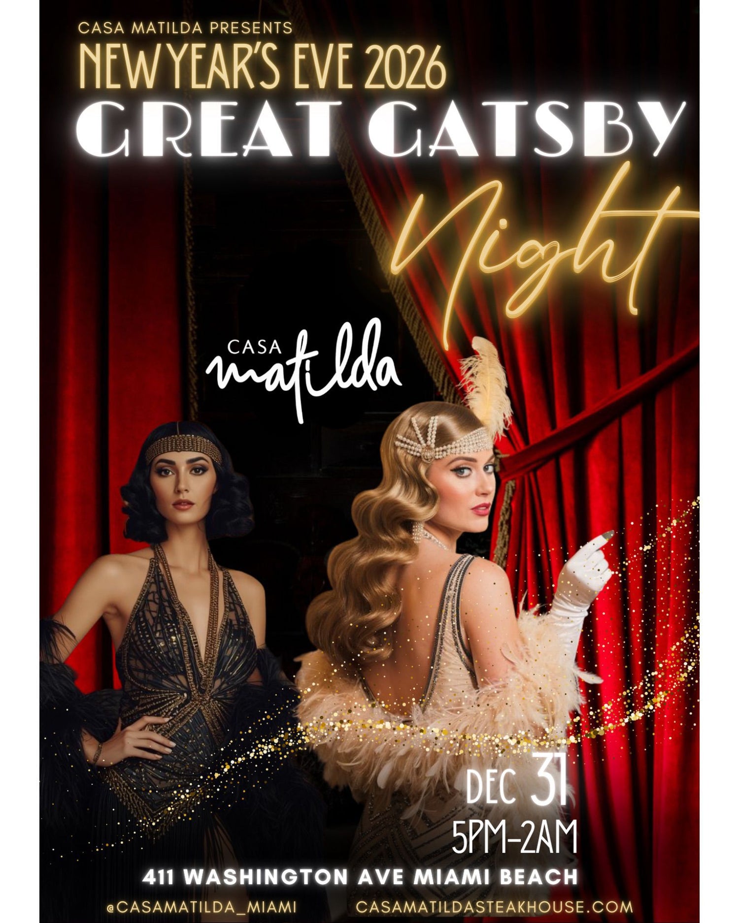 Casa Matilda invites you to our Great Gatsby Night, a glamorous celebration filled with elegance, live entertainment, premium drinks, and an elevated dinner experience inspired by the golden age of style.